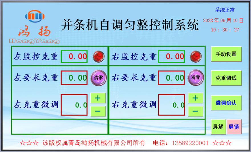 4、操作說(shuō)明:該系統(tǒng)操作簡(jiǎn)單,根據(jù)工藝要求輸入克重,設(shè)定好克重后,無(wú)需經(jīng)常調(diào)節(jié),穩(wěn)定性強(qiáng)。
